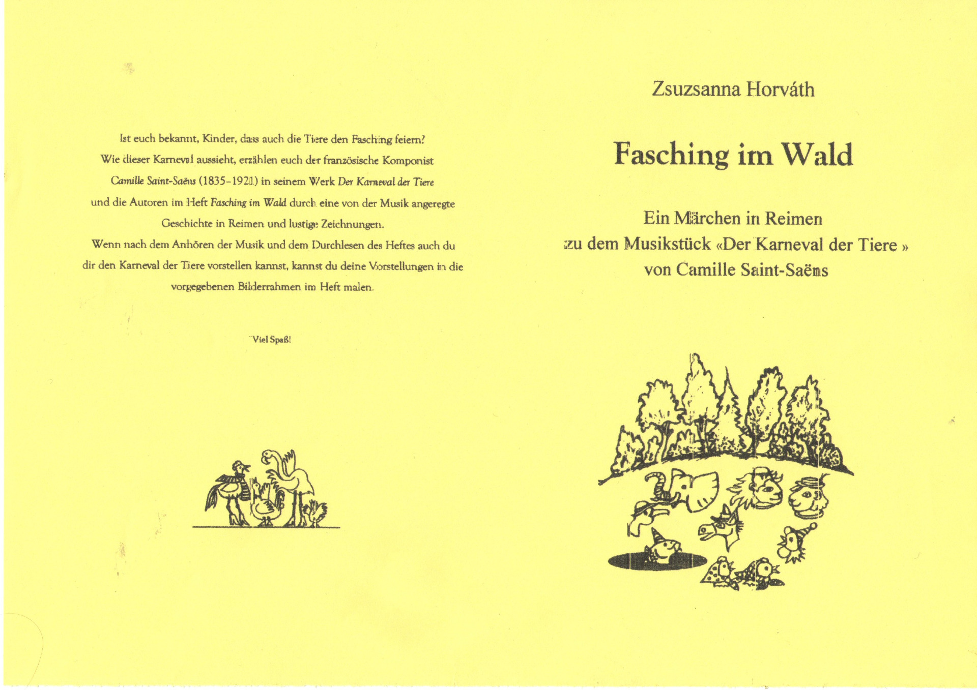 Bei der Anhörung des Musikwerks "Der Karneval der Tiere" von Camille Saint-Saëns habe ich mir vorge-stellt, wie dieser Karneval sein konnte. Meine Ge-schichte über dieses Fest habe ich für Kinder im Heft "Fasching im Wald" in Reimen niedergeschrieben, damit sie sie auch lesen können.