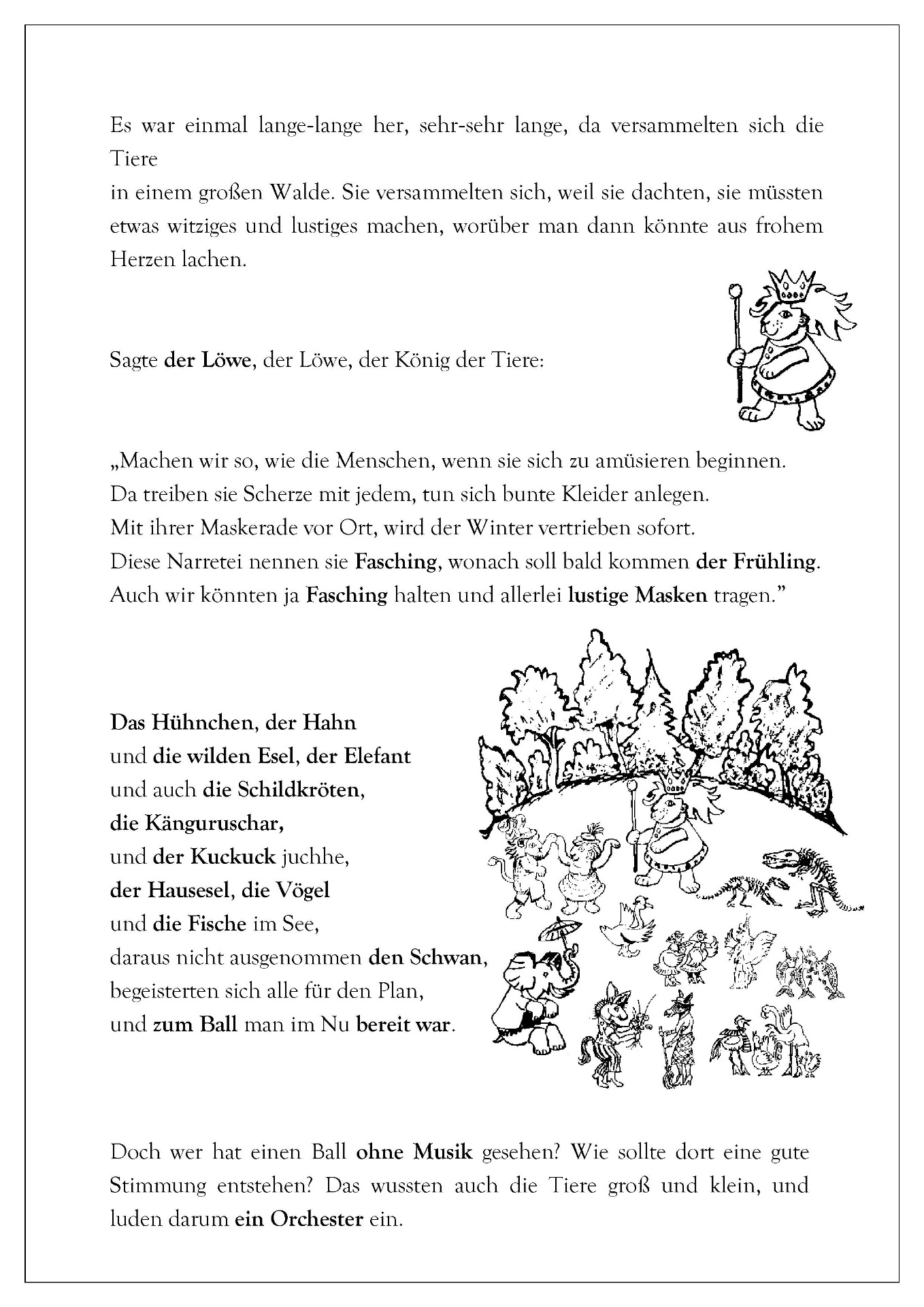 weitere Verse über den Faschingsumzug der Tiere. Inzwischen zeigt das